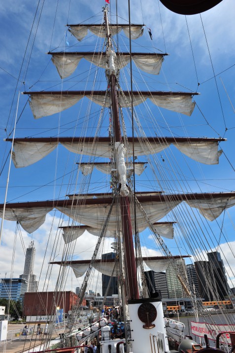 Everyone in Argentina will have noticed. This year they are celebrating their 200th year of independence. There will be a lot of festivities this year, and this is one of them. Together with Chile, Argentina has organised this bicentennial regatta. About 12 beautiful old sailboats are participating in a tour in Latin America, and right now they are here in Buenos Aires. I have seen something similar and as impressive about 16 years ago in Antwerp. It is worth a visit. Tomorrow they are leaving so if you can go then you will see them set sail (literally) to Isla de los Estados.