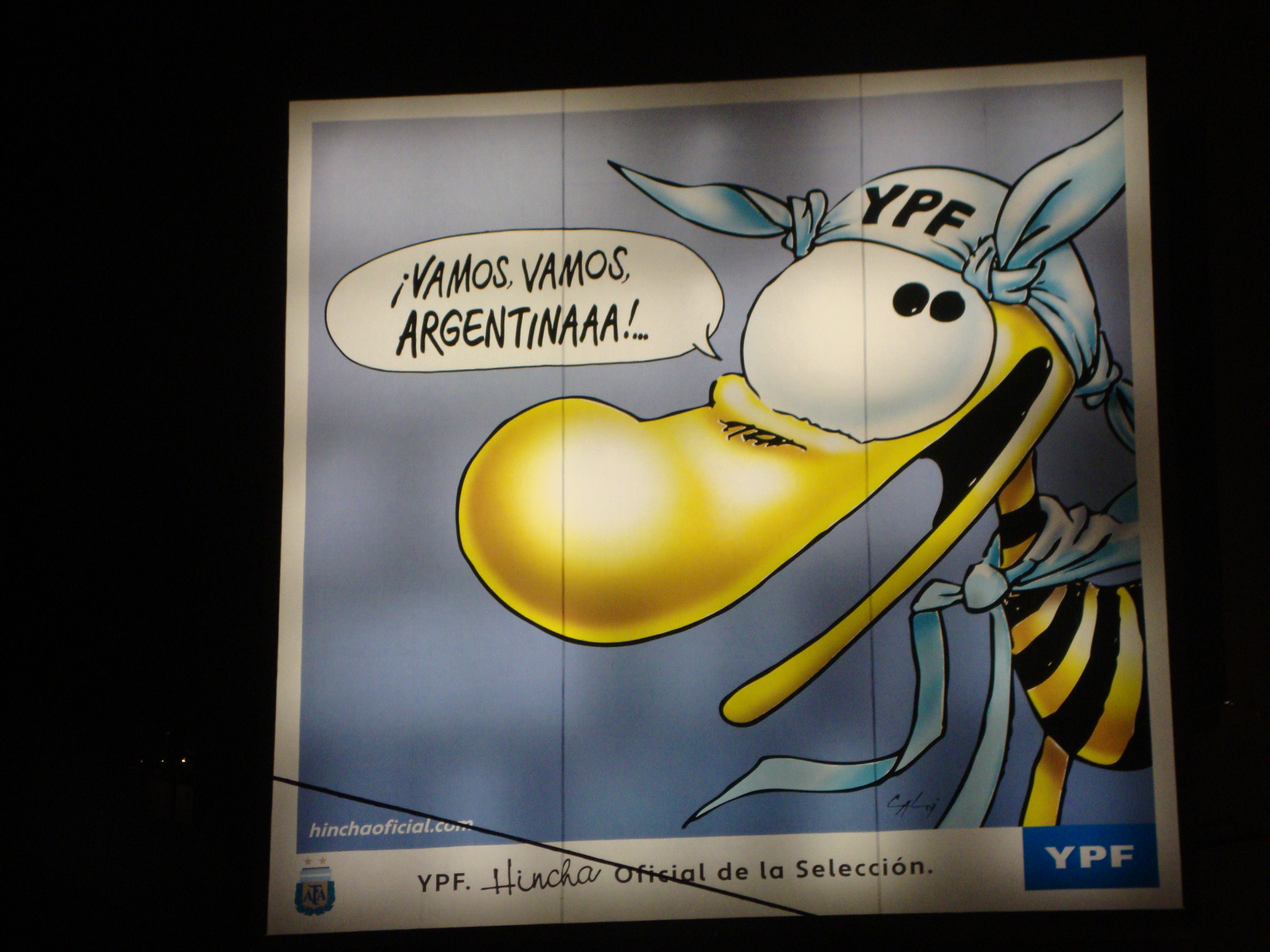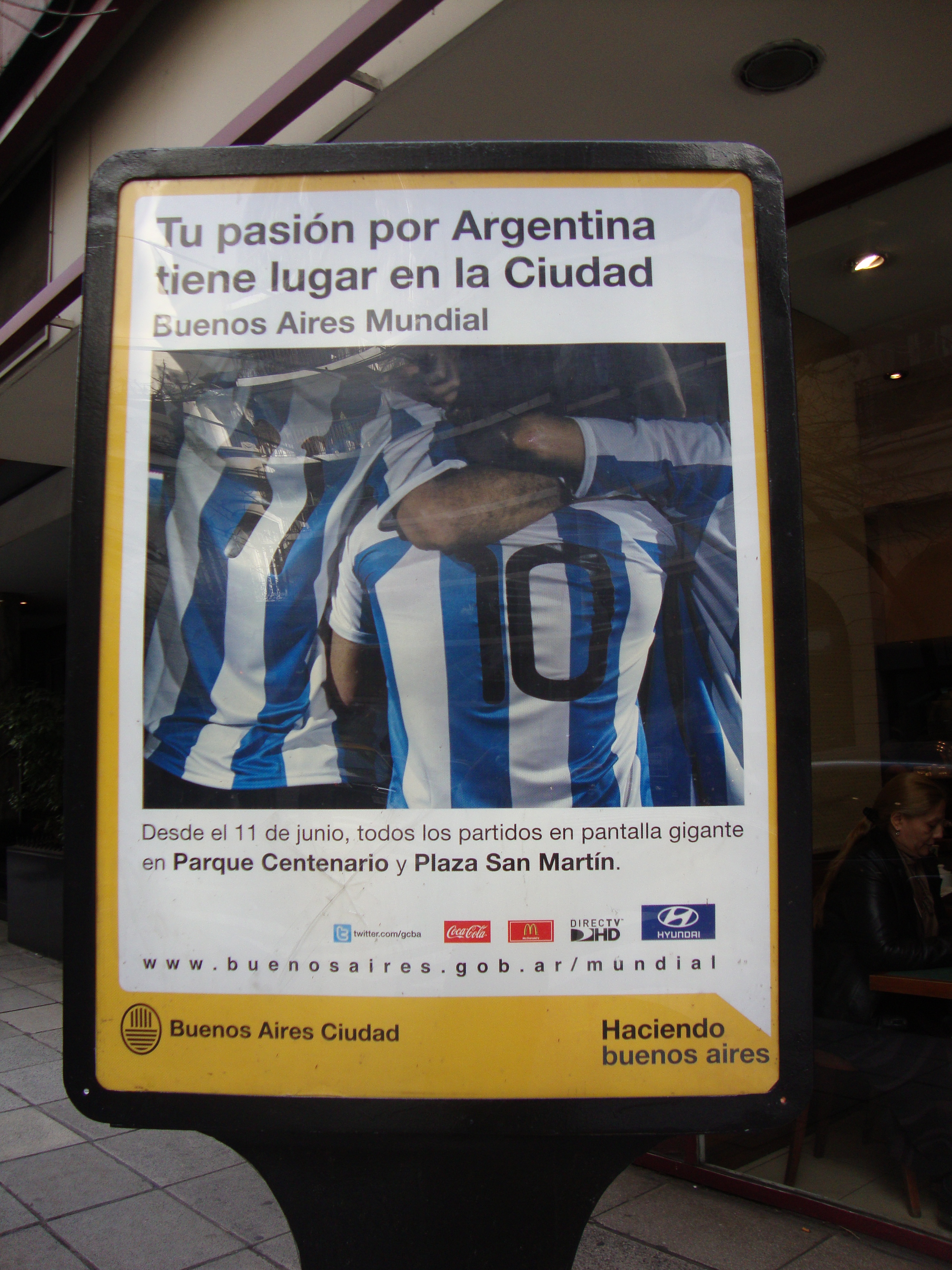 Here it seems ever present, it is mentioned everywhere; and it seems like all the adds in the streets have changed into something that has to do with the mundial. I saw the crasiest things. You can even buy a certain TV, and if Argentina wins the mundial you get your money back! If you don’t already own a TV, this is defenitely the time to buy one! Even products that have nothing to do with the mundial now use it in their adds.
