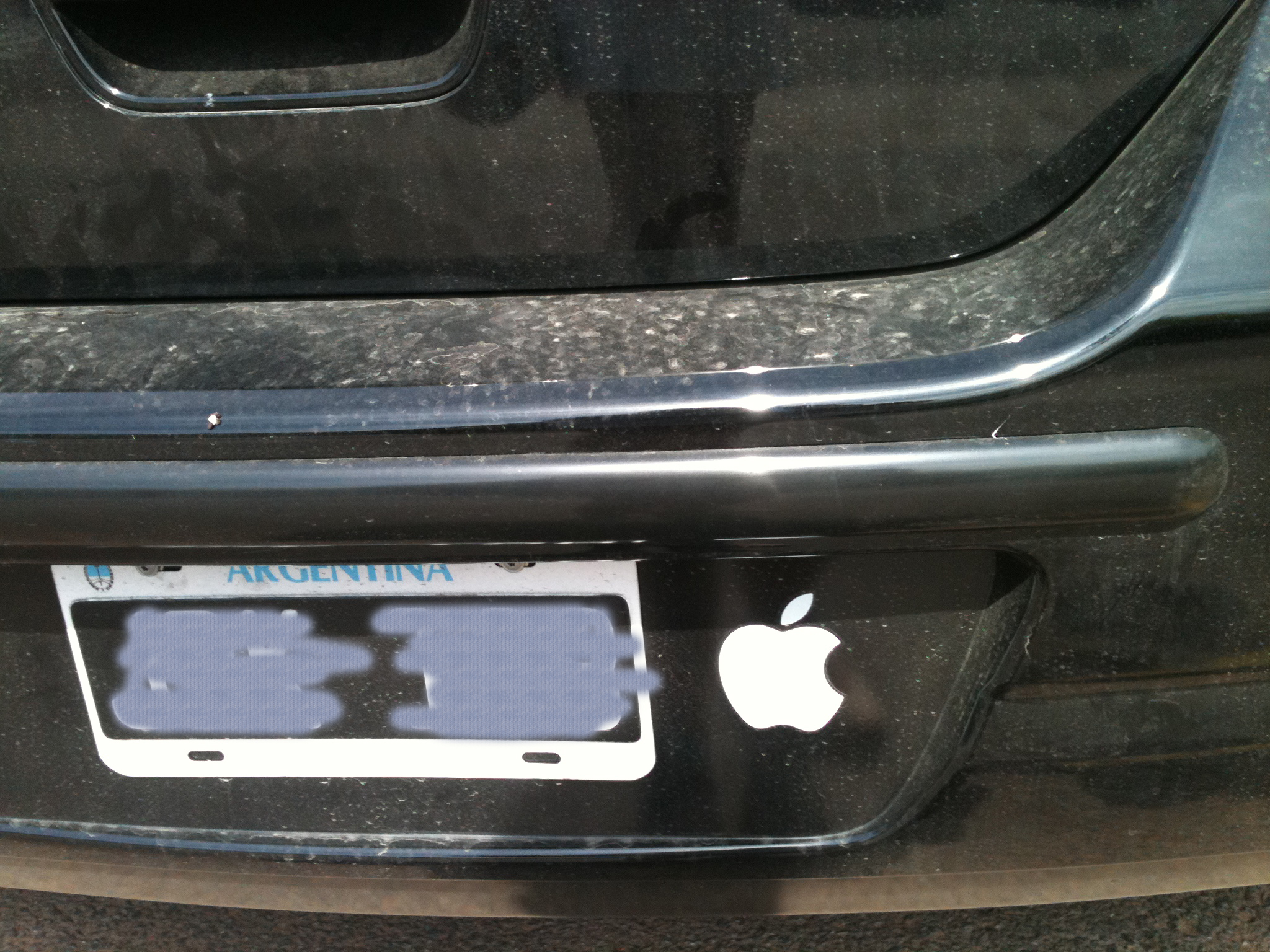 Although it seems very strange to me, here it is very common to put an Apple sticker on your car. You know, the sticker that you get together with your iPod or Iphone. I have always wondered what they were for. In Argentina they found the answer. They put them on their car. Is this some kind of status symbol? An iPhone or Ipod costs about 2 or even 3 times as much as in the States, and I am quite convinced that many of the sticker-owners got theirs directly (personally or via a friend of acquaintance) from the States. It really is a luxury item, a must-have for the well off.