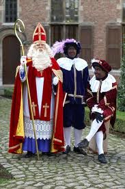Sinterklaas is a saint who lives in Spain. Every year he comes to Belgium and Holland with a steamer, just before the 5th of december. That is his day. Or better, his night. That night he goes from door to door, he on his horse, his helpers on foot. Actually he doesn’t really go from door to door, he goes from chimney to chimny, over the rooftops. His helpers are called Black Jacks and they carry big bags with toys (and empty bags to put the bad children in, but that ‘s been getting out of use these days). If these helpers are “real” blacks, if they are black because their job is delivering toys to kids through the chimney, is not known. Personally I would go for the last option, as the 9,999 out of 10 they are whites with a painted face.