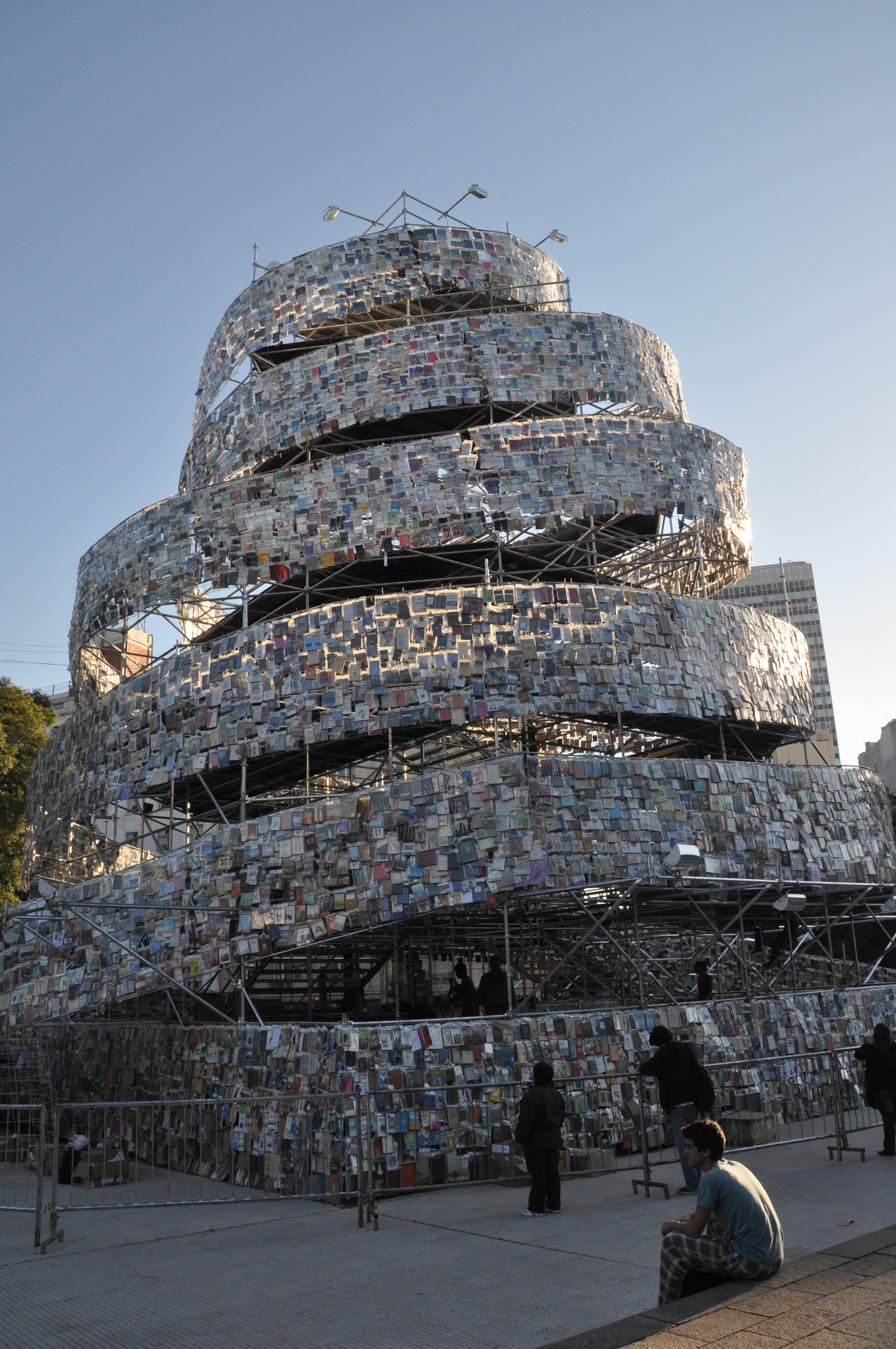 The first piece of art on the program is the Tower of Babel (Torre de Babel), by the Argentine artist Marta Minujín. It is made out of 30,000 books. All types of books are included in this piece of art. From dictionaries and old software books to classic literature, and many other. They were donated by embassies from all over the world as well as by civil organizations and of course by lots of Argentine citizens. This mountain of books is 28 meter high and has 6 floors. It symbolizes the unification of all races throughout the world.